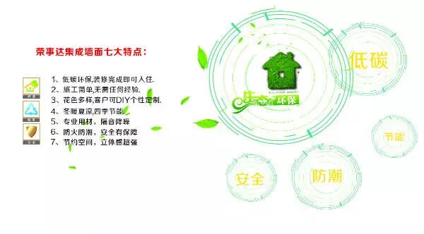 作为顶墙行业十大品牌——荣事达集成墙面,采用新型环保材料——竹木纤维与木塑,取材天然,由竹粉、木粉等原始材料经过高温高压复合而成。是一种高强度、节能型、绿色环保的墙面板材,环保等级达到欧洲E0级。上午安装下午即可入住,保证环境绿色健康,为您的家居生活“保驾护航”。
