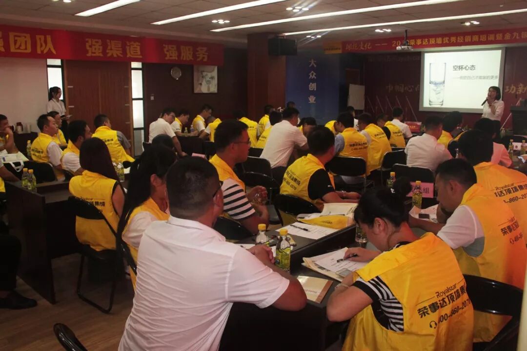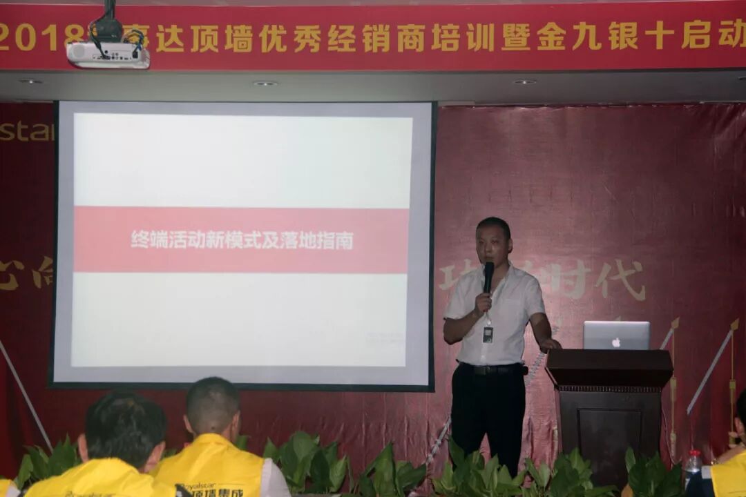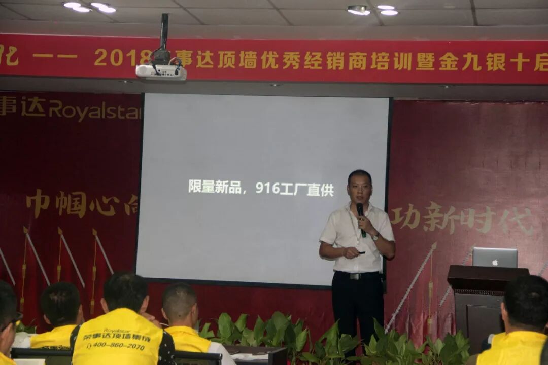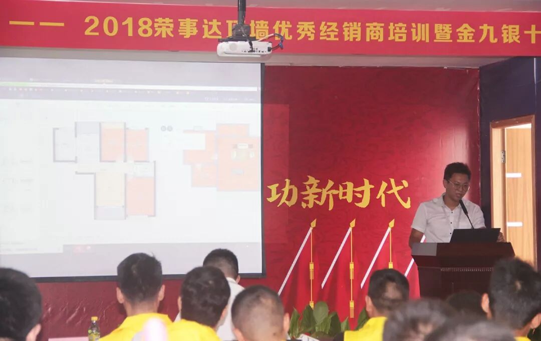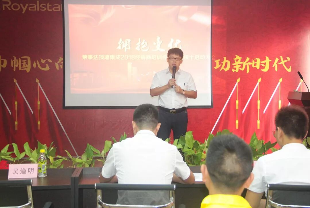 总经理吴道明先生首先为大家做了一个精彩的大会动员,他结合2018年前八个月终端营销业绩、总部实施的战略大部署以及实地商家考察等方面,指出终端营销需要主动出击,要紧跟总部大步伐;总部也将持续在各个时间节点做好战略部署,把好产品质量关,持续推进零缺陷管理理念和红地毯服务;并鼓励在场*销商互相沟通、学习、借鉴好的营销案例,一起将荣事达顶墙集成品牌打造的更大更强。*,预祝大家此次培训会收获满满!