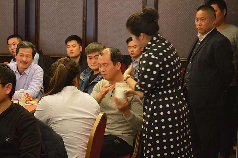 业主热烈讨论和发问,并现场体验氧森源火山泥和传统装修材料环保性能的巨大差异。