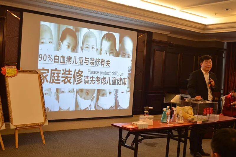 现场首先以一组数据和一段视频,为所有业主揭示了当下装修污染的严峻现状和致命危害,以现实案例向大家普及传统装修材料并没有大家想象中环保,环保装修并不代表零污染。