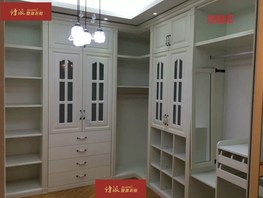 诗派整体衣柜为了满足市场不同消费群体需要,柜体板材上面选择了E1级和E0级的中纤板(密度板)和多层实木板材来满足不同地区的店面销售。诗派以人为本的设计理念和消费理念。拥有标准的生产车间和规范的生产流程。