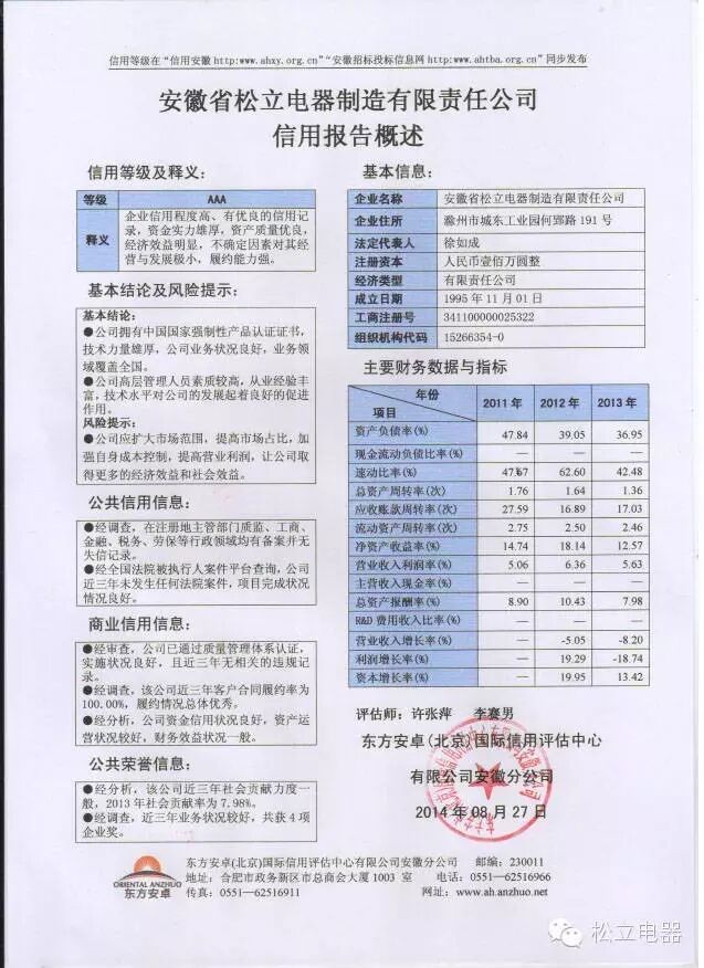 信用安徽:百度输入“信用安徽”进入页面,右侧方框输入关键字“松立”点击本站检索,可以查询到松立:政府公示AAA信用企业。